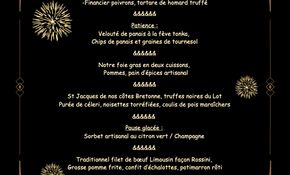 Rejoignez-nous pour célébrer le repas de la Saint-Sylvestre le 31 décembre au soir au restaurant Lanaud. Un menu d'exception vous attend à découvrir sur notre site Internet, la soirée sera festive et animée par un DJ.
